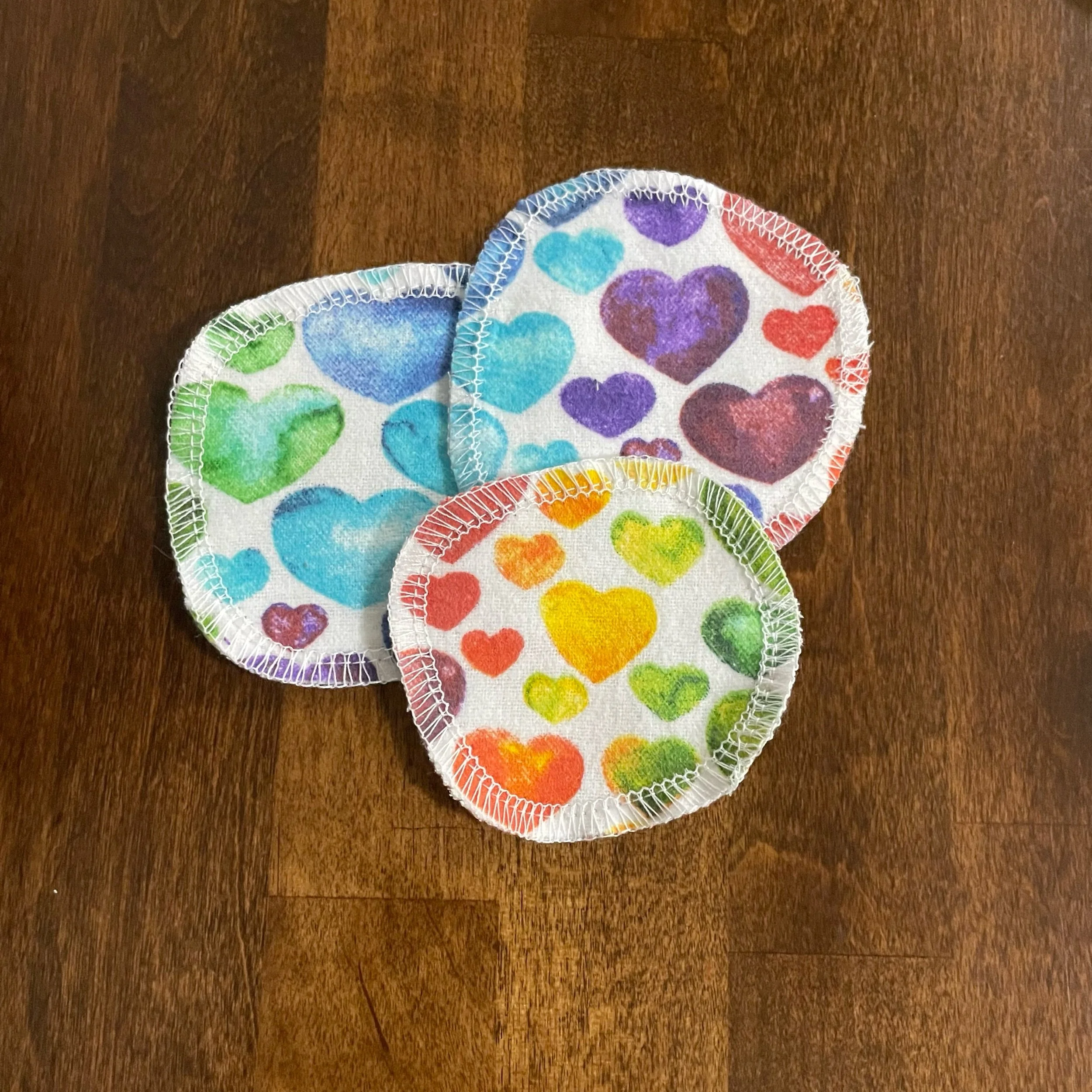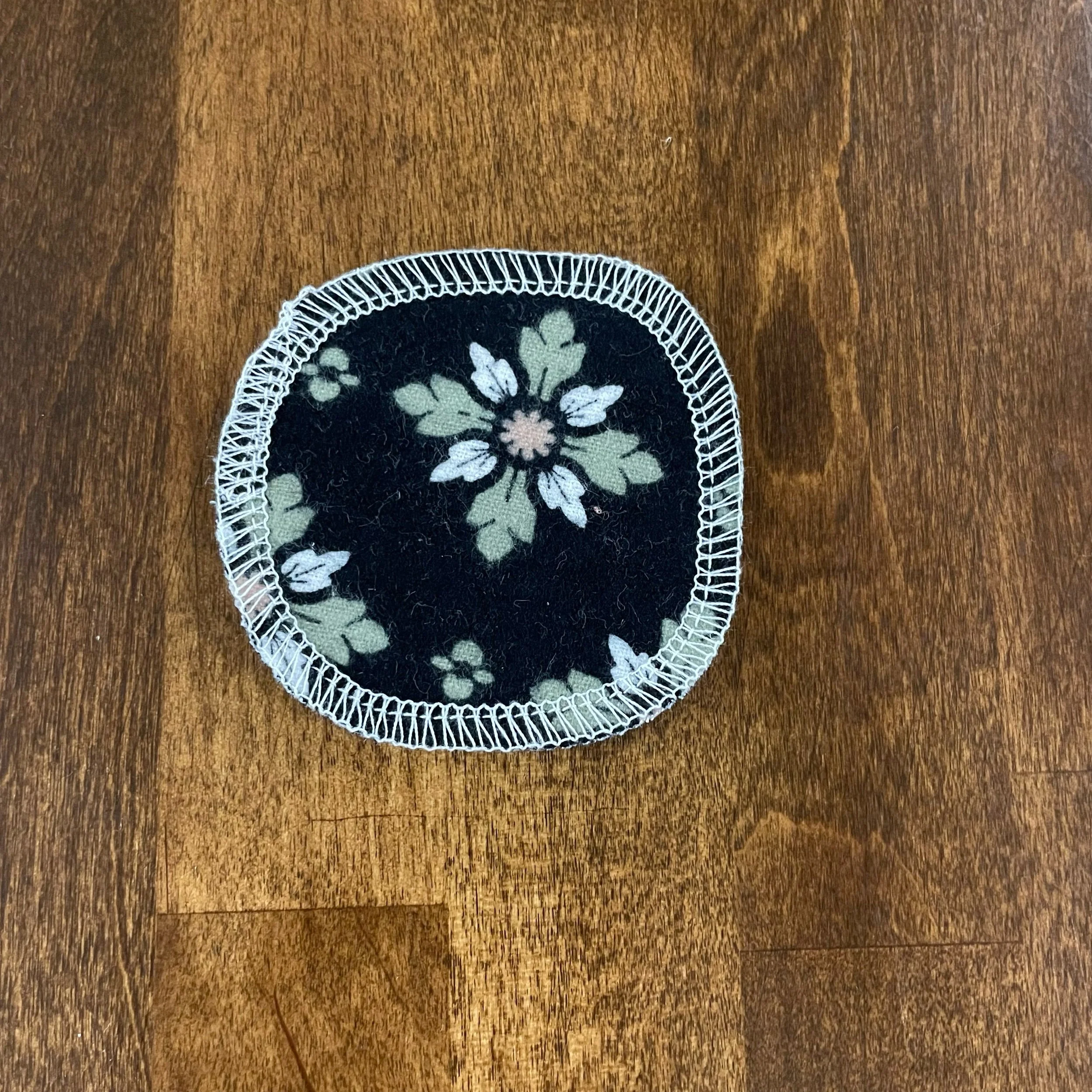 Our Facial Rounds are approximately 3” in diameter and are made from 100% cotton flannel. Each round is handmade and given finished edges to keep the fabric from fraying due to normal use and wash. These Facial Rounds are machine washable and will continue to stay soft, even after numerous uses.