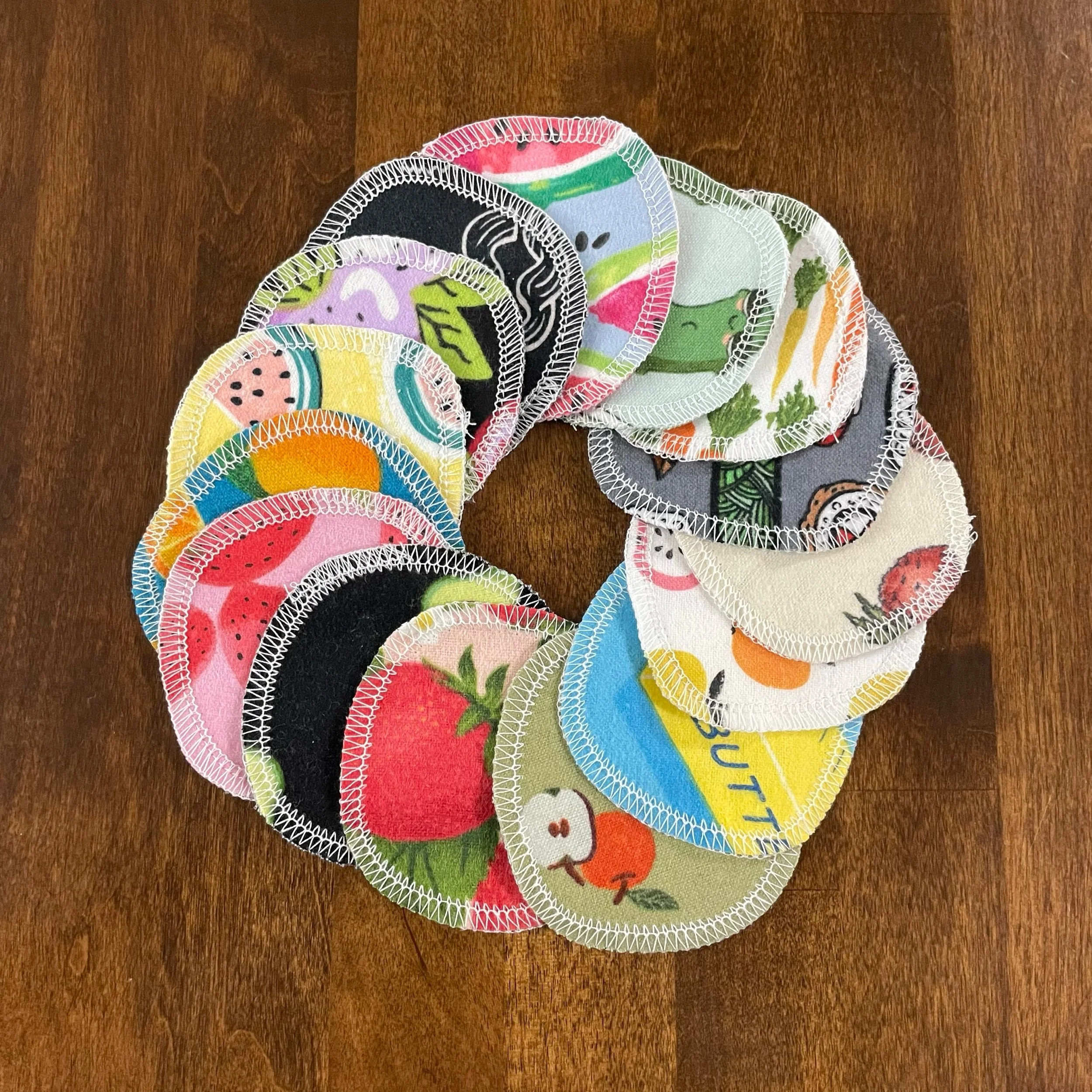 In an effort to reduce waste, these Facial Rounds are made with remnant material from making Paperless Towels and Cloth Napkins. As a result, available patterns in any given variety pack may vary. For example, the Food Variety pack will always be made up of food patterns, however, those individual patterns may vary from pack to pack.