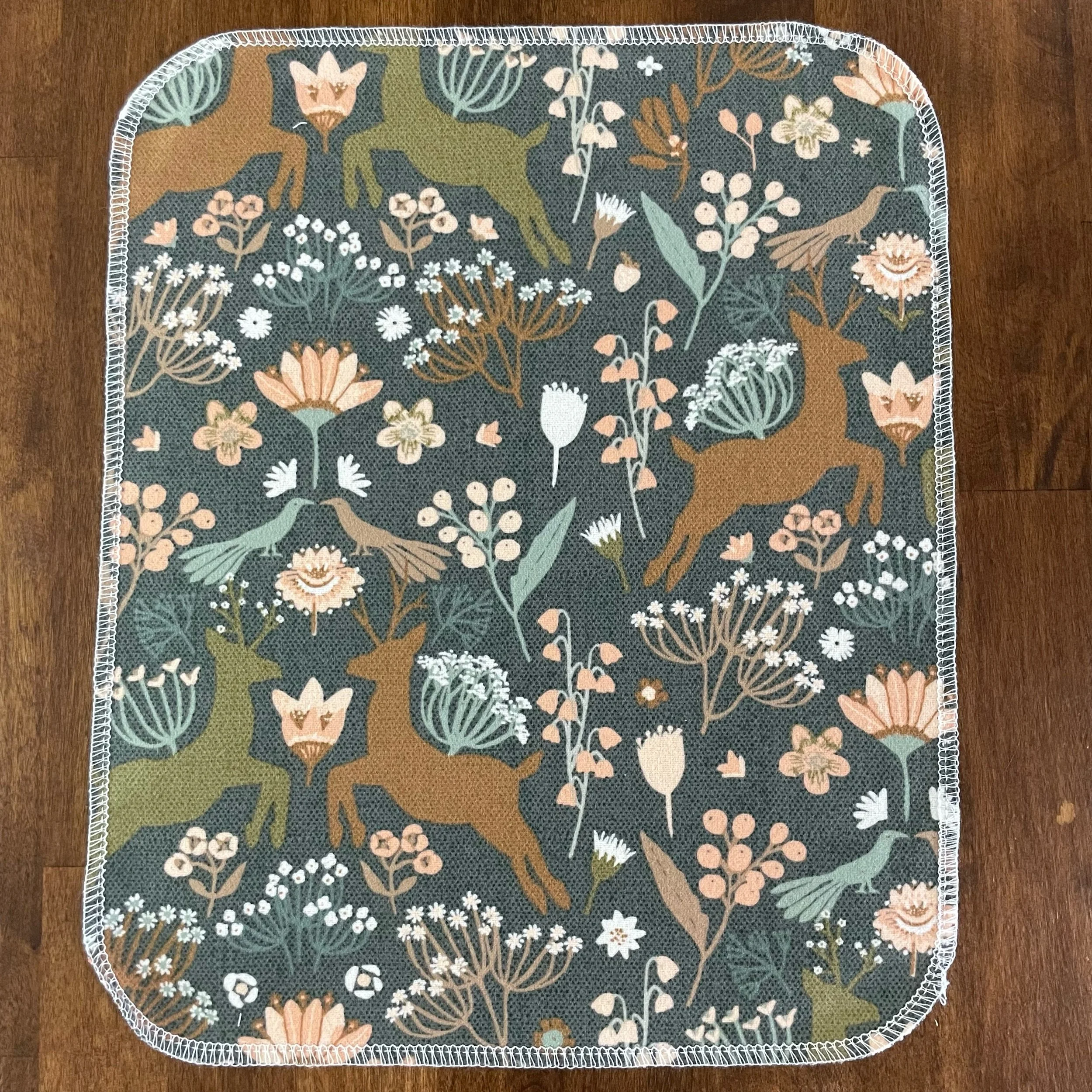 Our Paperless Towels are approximately 10"x12" and are made from 100% cotton flannel. Each towel is handmade and given finished edges to keep the fabric from fraying due to normal use and wash. These Paperless Towels are machine washable and will get more absorbent the more they are used.