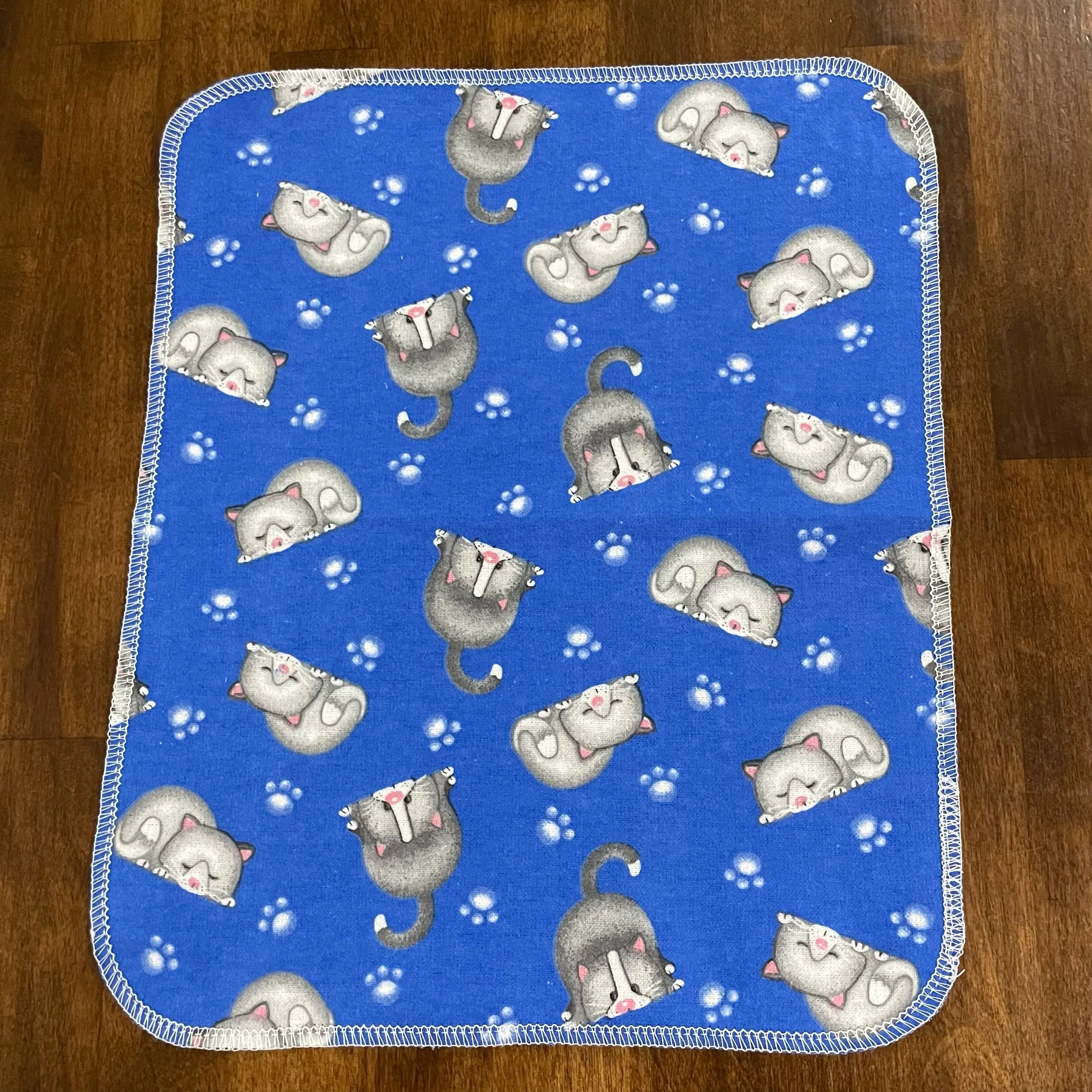 Our Paperless Towels are approximately 10"x12" and are made from 100% cotton flannel. Each towel is handmade and given finished edges to keep the fabric from fraying due to normal use and wash. These Paperless Towels are machine washable and will get more absorbent the more they are used.