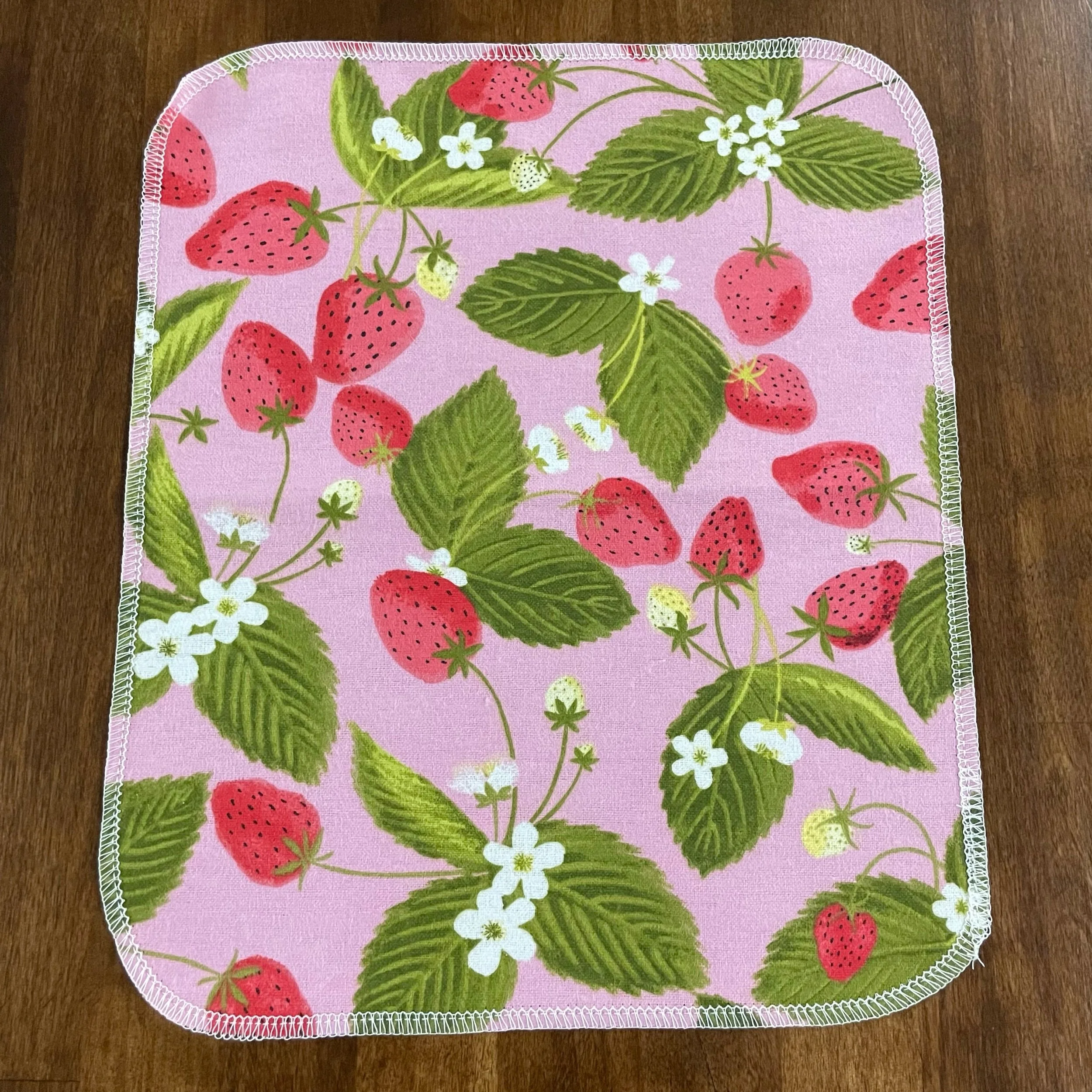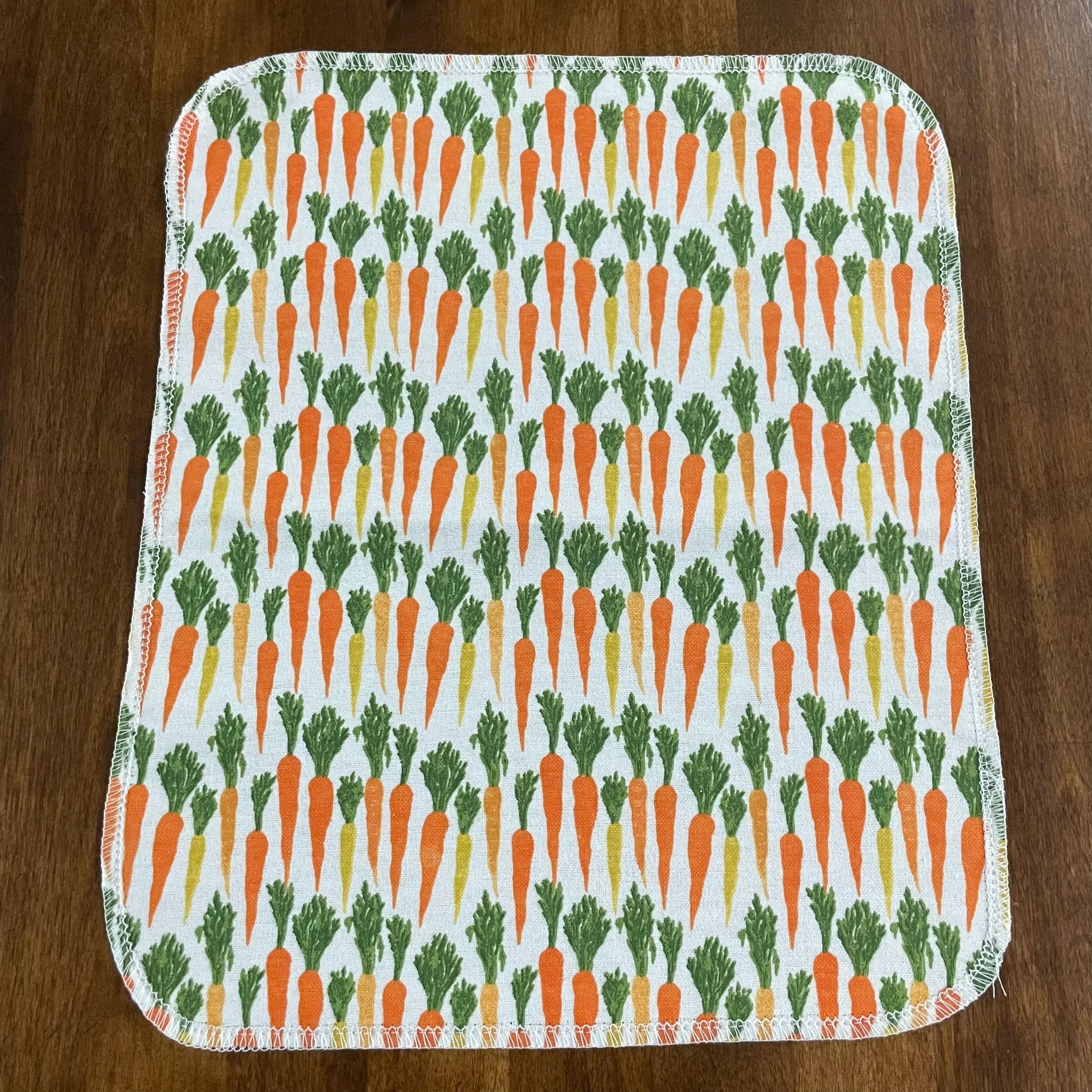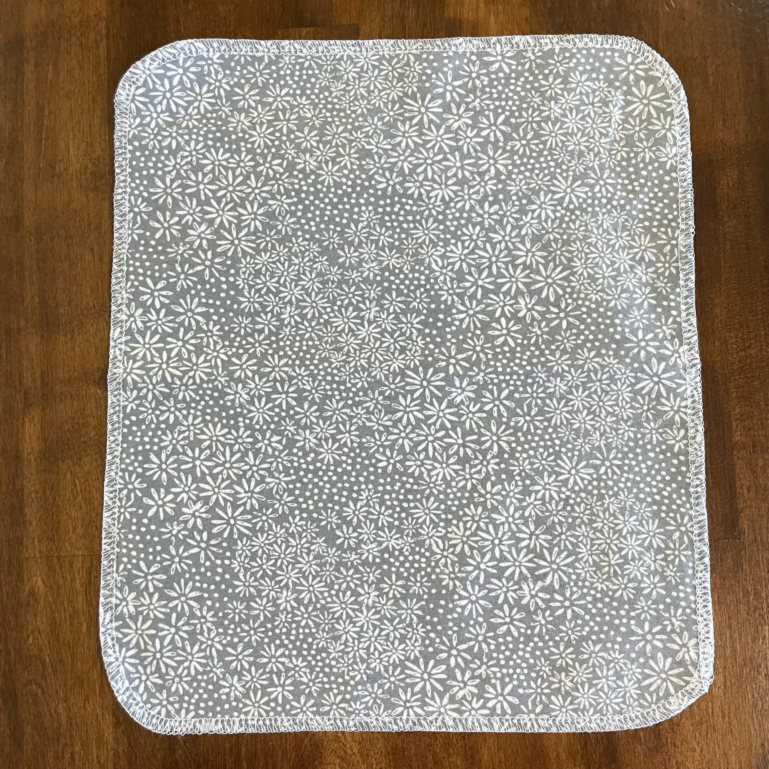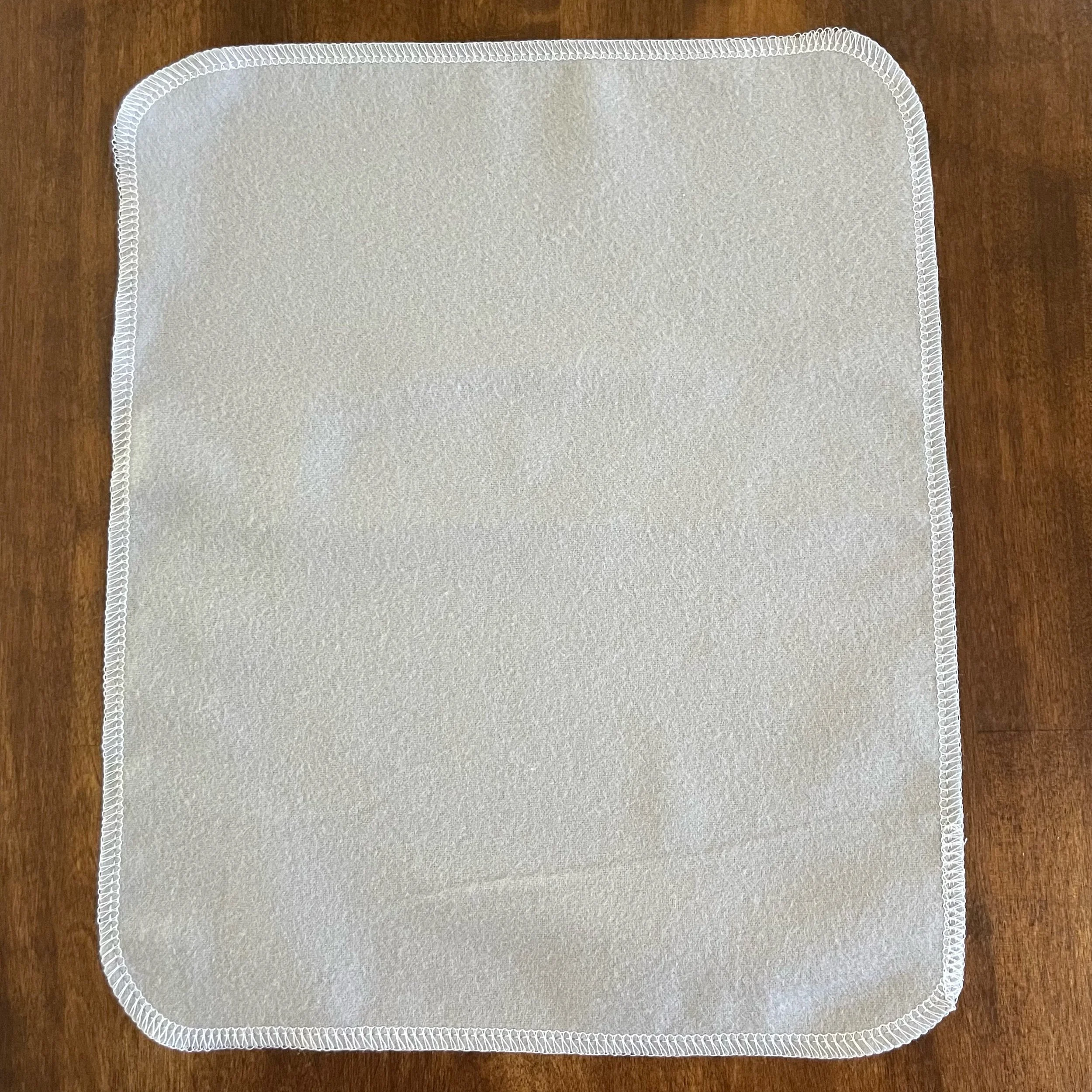 Our Paperless Towels are approximately 10"x12" and are made from 100% cotton flannel. Each towel is handmade and given finished edges to keep the fabric from fraying due to normal use and wash. These Paperless Towels are machine washable and will get more absorbent the more they are used.