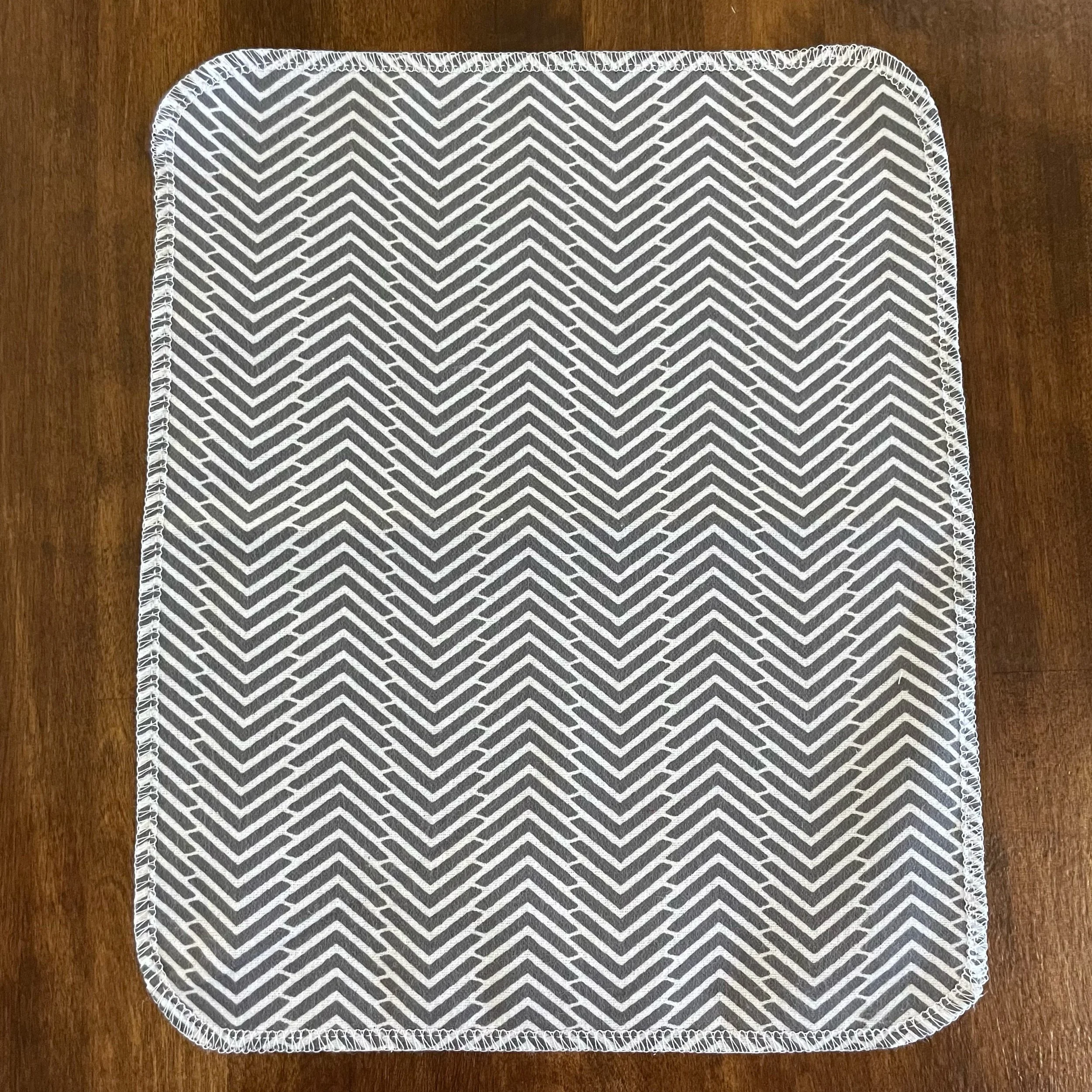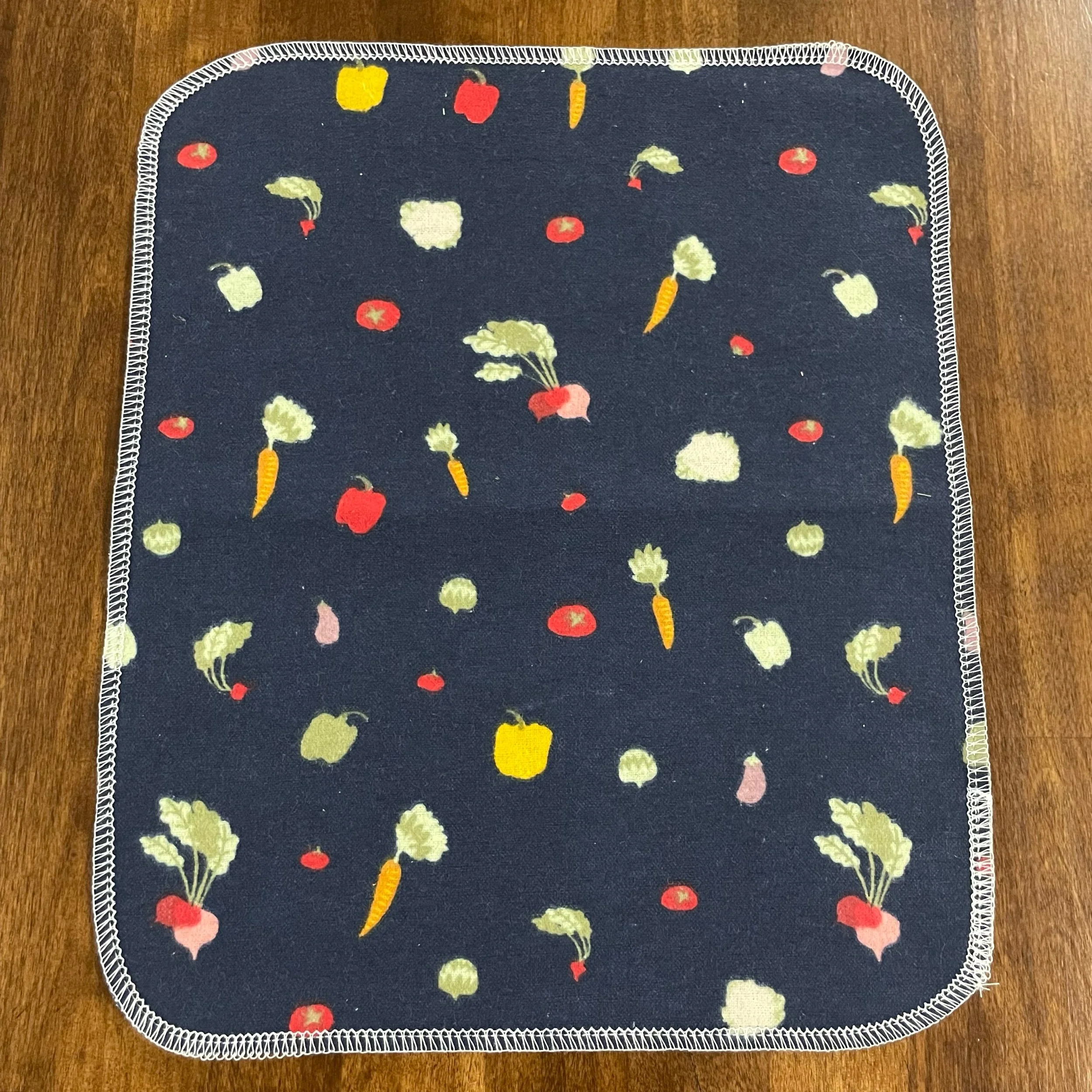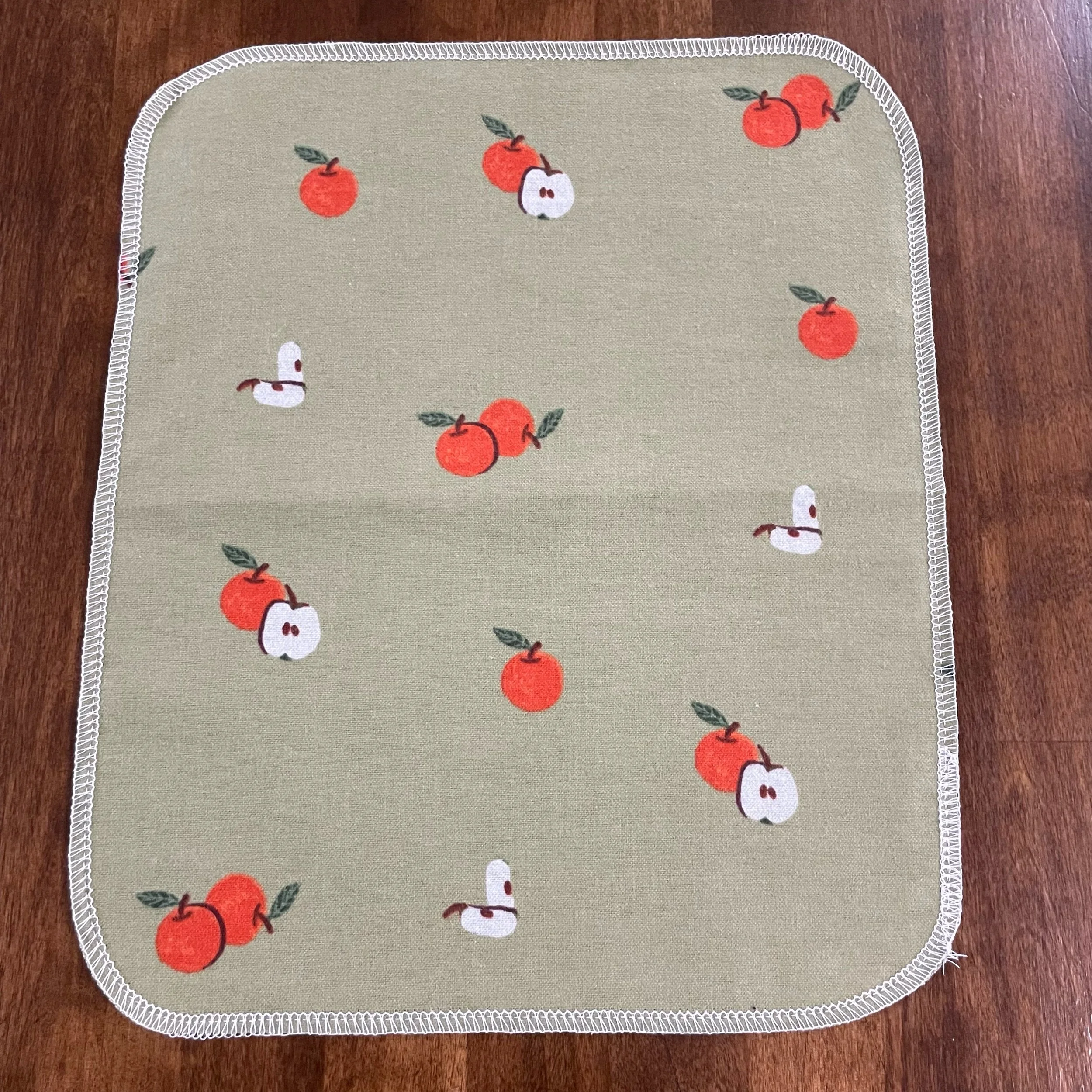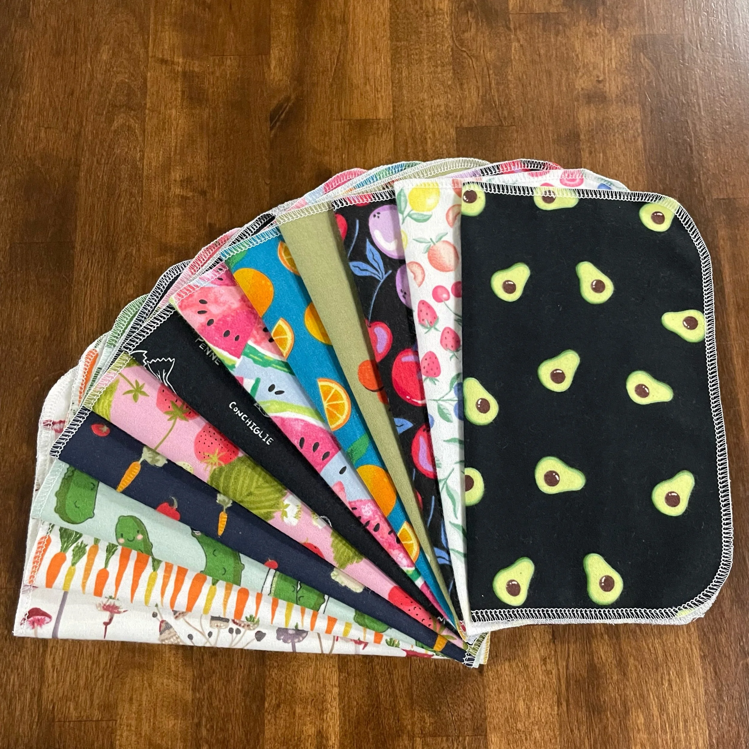 Our Paperless Towels are approximately 10"x12" and are made from 100% cotton flannel. Each towel is handmade and given finished edges to keep the fabric from fraying due to normal use and wash. These Paperless Towels are machine washable and will get more absorbent the more they are used.