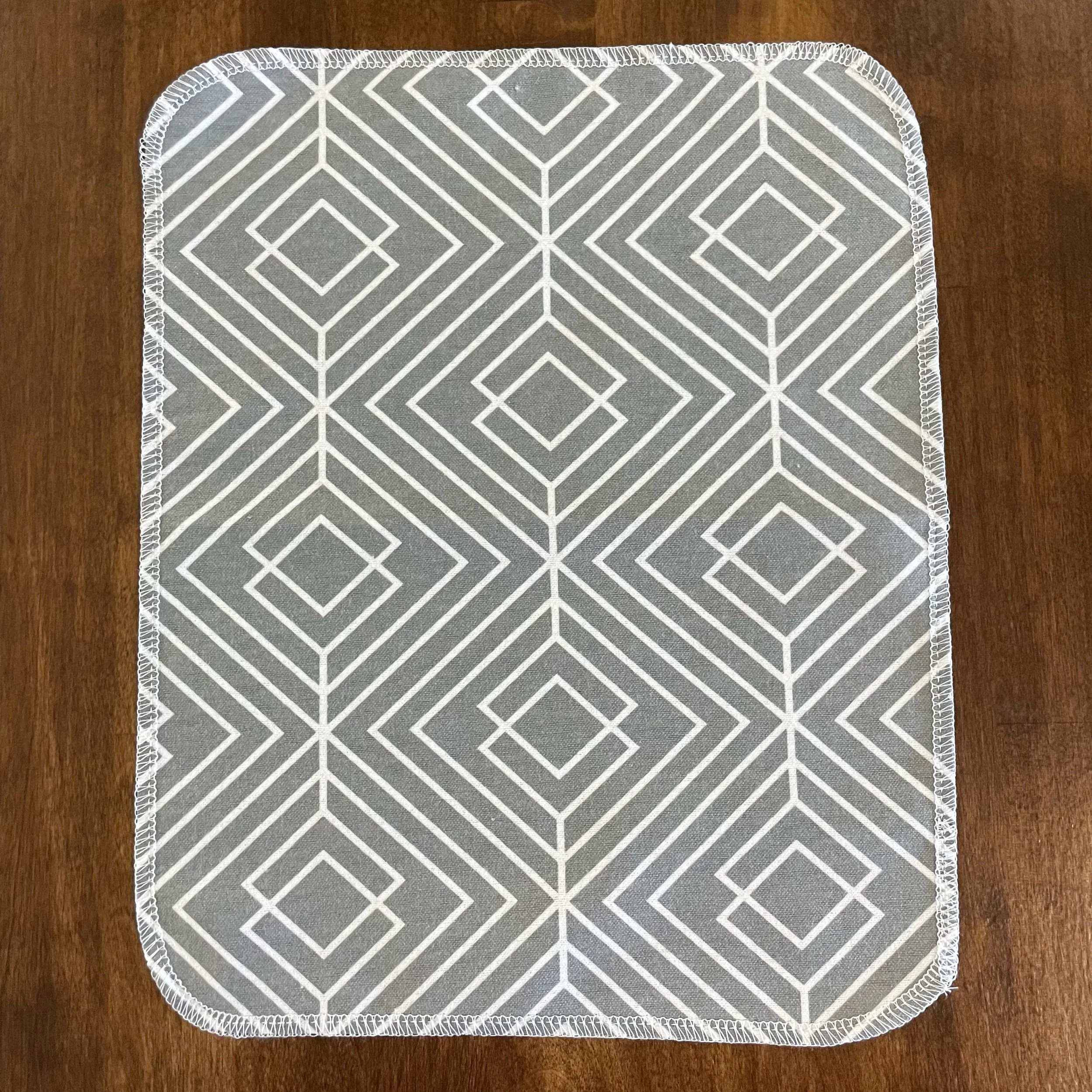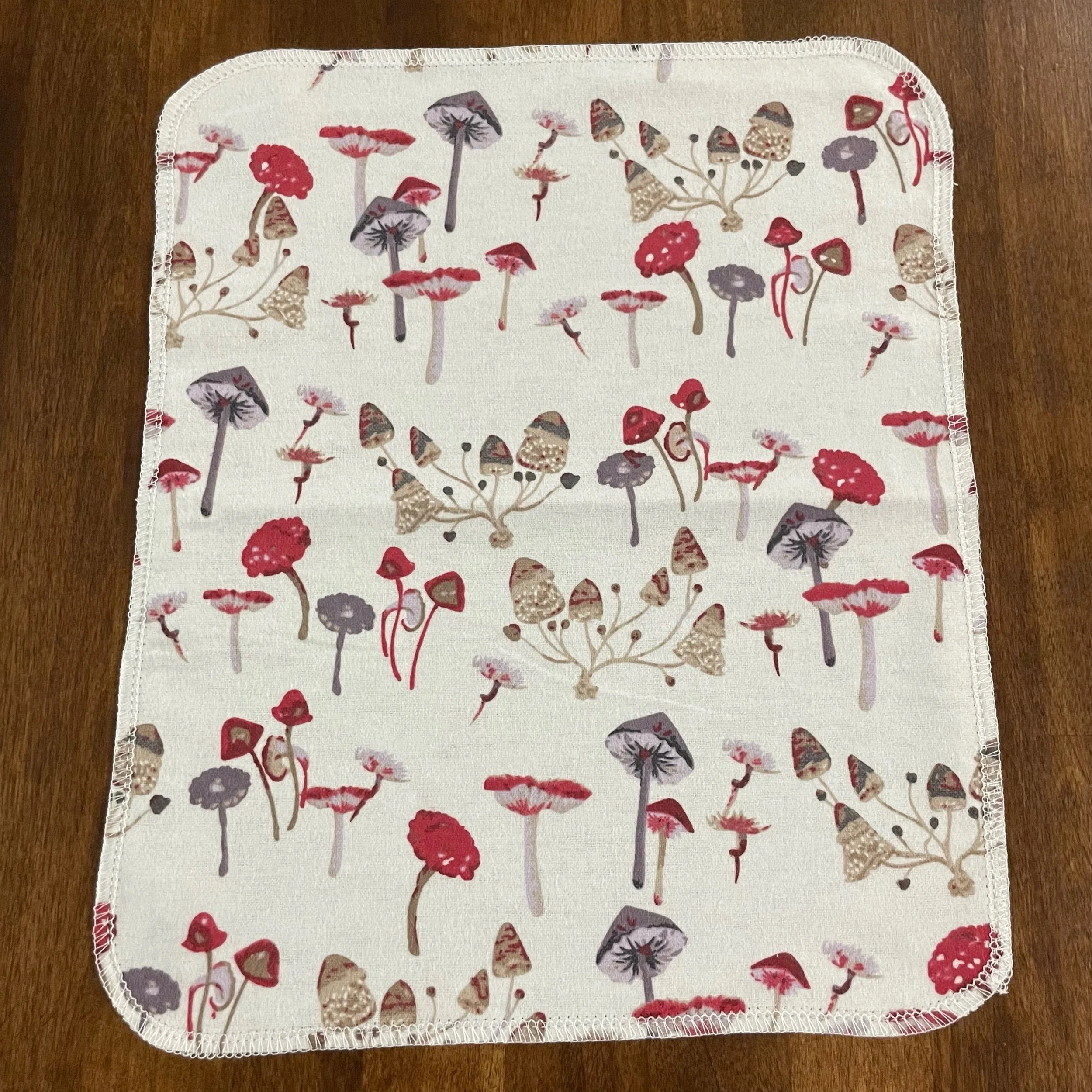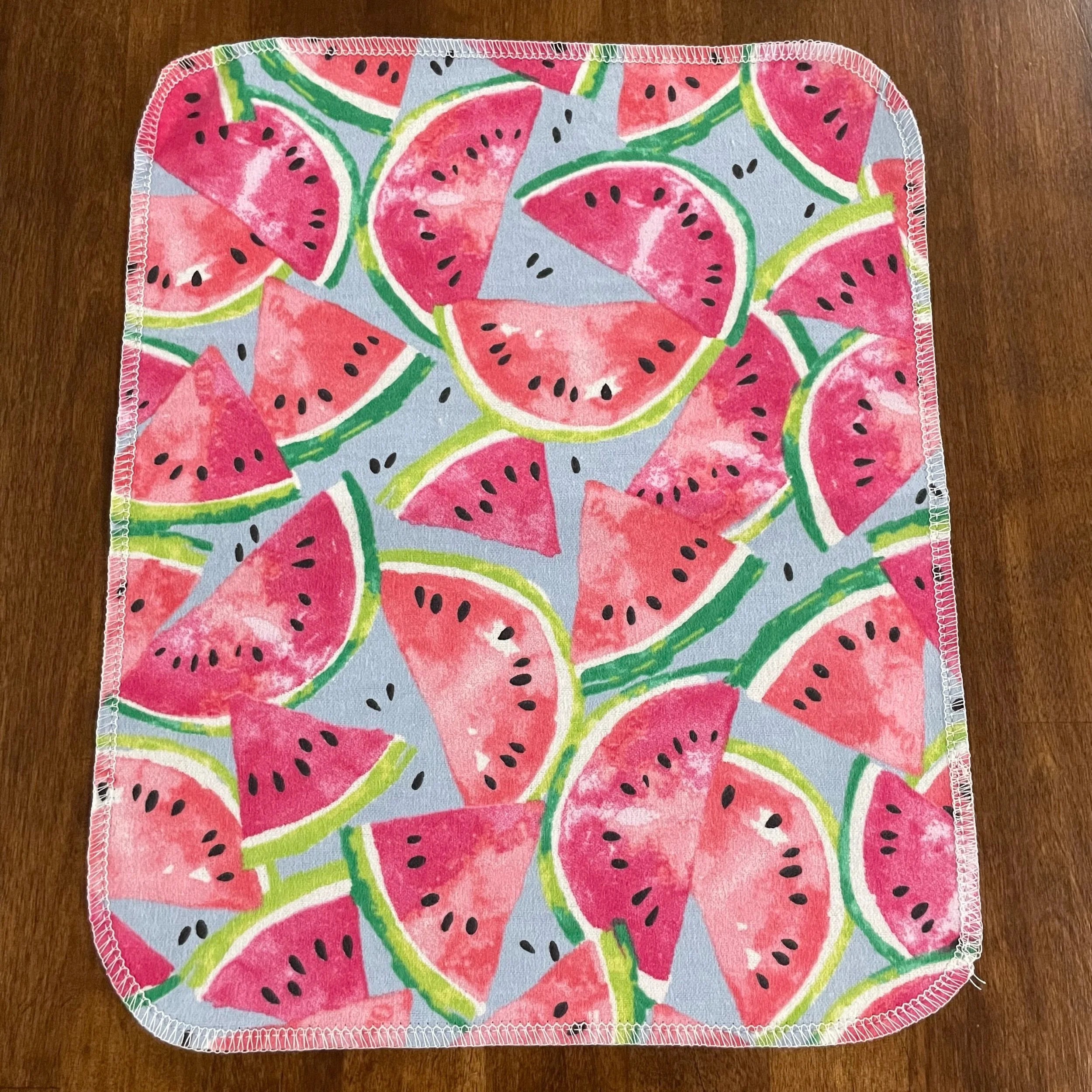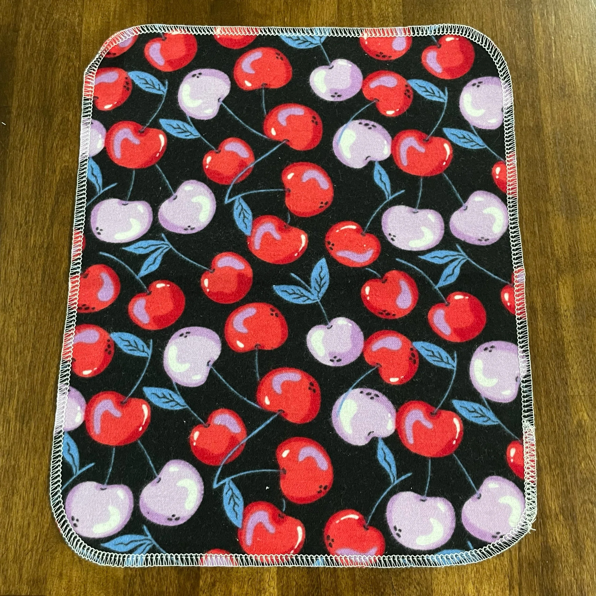 Our Paperless Towels are approximately 10"x12" and are made from 100% cotton flannel. Each towel is handmade and given finished edges to keep the fabric from fraying due to normal use and wash. These Paperless Towels are machine washable and will get more absorbent the more they are used.